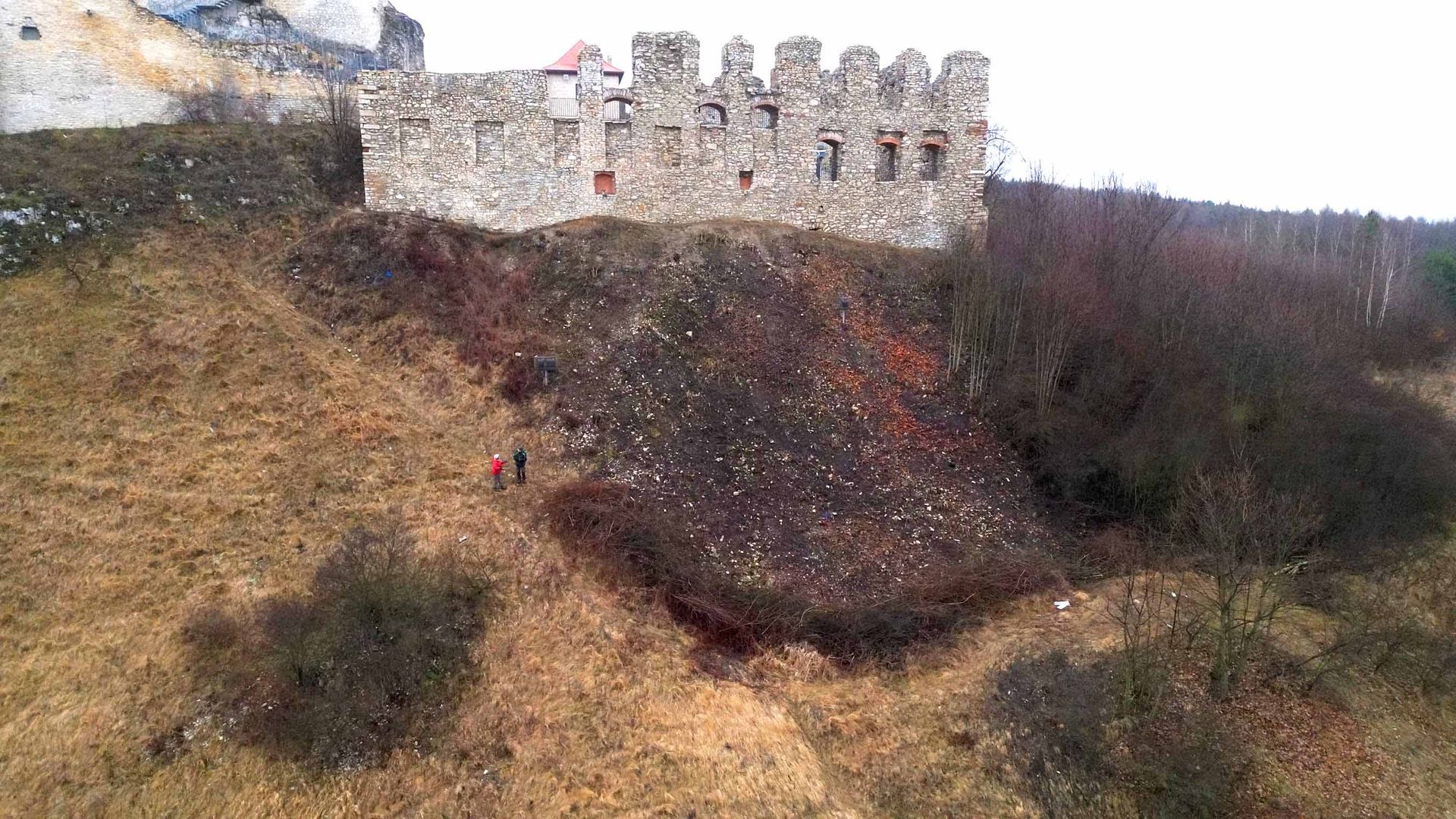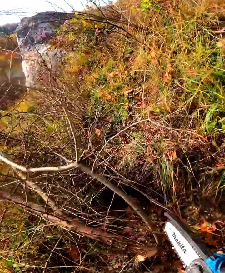 Problem gigantycznej sukcesji wtórnej Siedliska kserotermiczne w badanych lokalizacjach uległy daleko posuniętej sukcesji wtórnej. Dokumentacja fotograficzna wykonana przed rozpoczęciem prac ukazuje gęste, wysokie struktury drzewiaste i krzewiaste całkowicie zacieniające skały. Taki stan doprowadził do drastycznego spadku dostępności światła, zagrażając egzystencji specyficznych fitocenoz ciepłolubnych. Usunięcie tej potężnej biomasy – przy jednoczesnym selektywnym zachowaniu wskazanych w Opisie Przedmiotu Zamówienia okazów dzikich róż i głogów – było niezbędne do przywrócenia pierwotnego składu gatunkowego muraw.